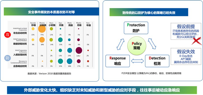 另外,安全事件频发的本质是攻守双方能力的不对等。一次成功的黑客攻击,攻击方可以做到速战速决,而防守方为了及时发现入侵并控制安全事件带来的影响,往往需要耗费大量的建设时间和人力成本。在外部威胁变化越来越快的今天,我们凭借自身的安全能力已经很难有效应对。