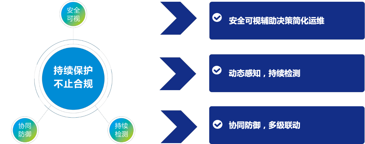践行前沿网络安全理念,打造网络安全生态圈,提倡“持续保护、不止合规”的等保核心价值。以可视化的方式让用户看清资产、业务关系,看懂威胁、安全风险;对网络中各类风险持续检测,将安全运营工作化繁为简;构建本地协同、云端联动的动态保护体系,让用户感受到等级保护带来的实际价值。