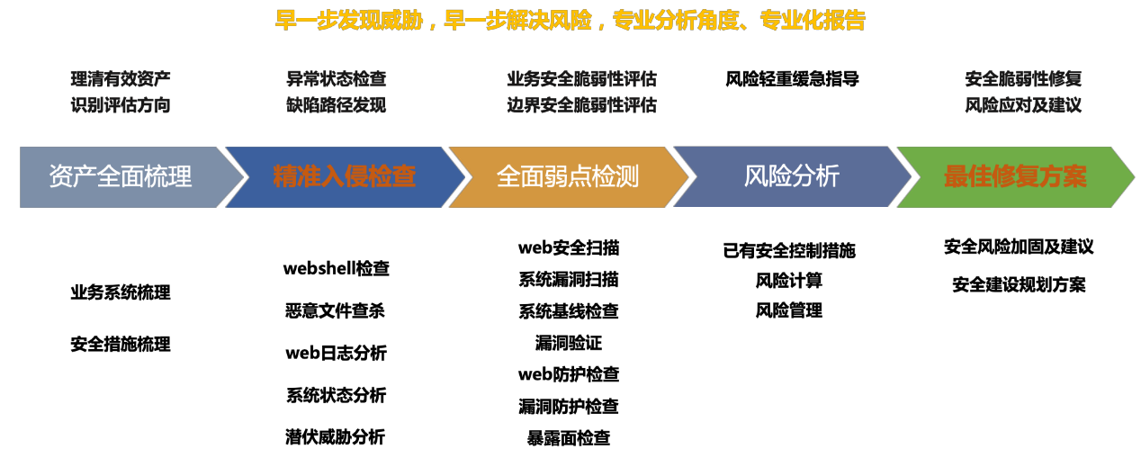 众所周知,信息安全具有动态性、相对性等特征,任何网络、任何系统都可能存在安全 隐患,所有的安全事件大部分都是由于这些安全隐患被攻击者利用而导致的,因此对于组织单位来说,如何提前发现和防范这些安全隐患成为能否减少安全事件的最关键因素。