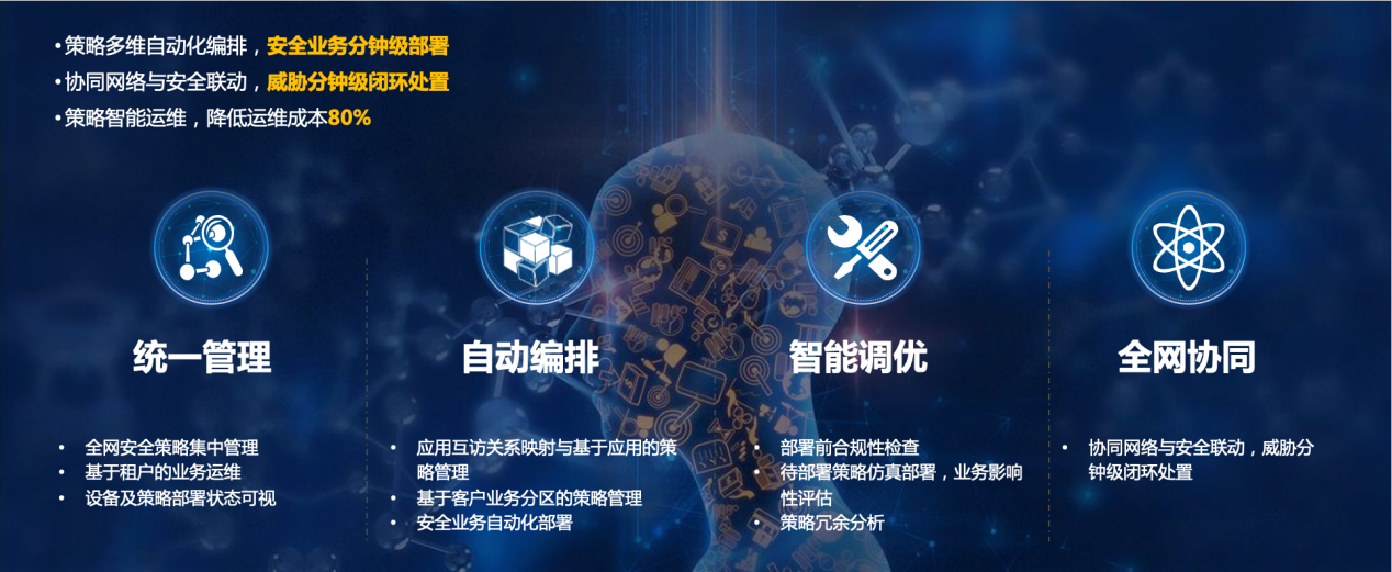 通过和安全控制器、安全设备的快速联动,实现秒级响应,大大提高安全响应速度和效率。并可以进行手动或自动的安全策略联动,对安全威胁进行处置,防止和降低其对网络和业务的影响。
